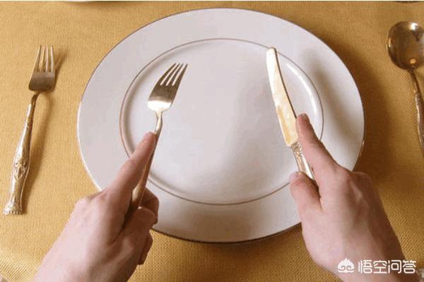 4、用餐完毕,每吃完—道菜,把刀叉并拢刀锋朝自己,叉背朝下,以4~10点方向并排斜放再盘上,服务炅即知可收掉盘子。已设置好的餐具不可随意改变位置,不过如果你是左撇子,在吃的时候可将刀叉互相更换使用。