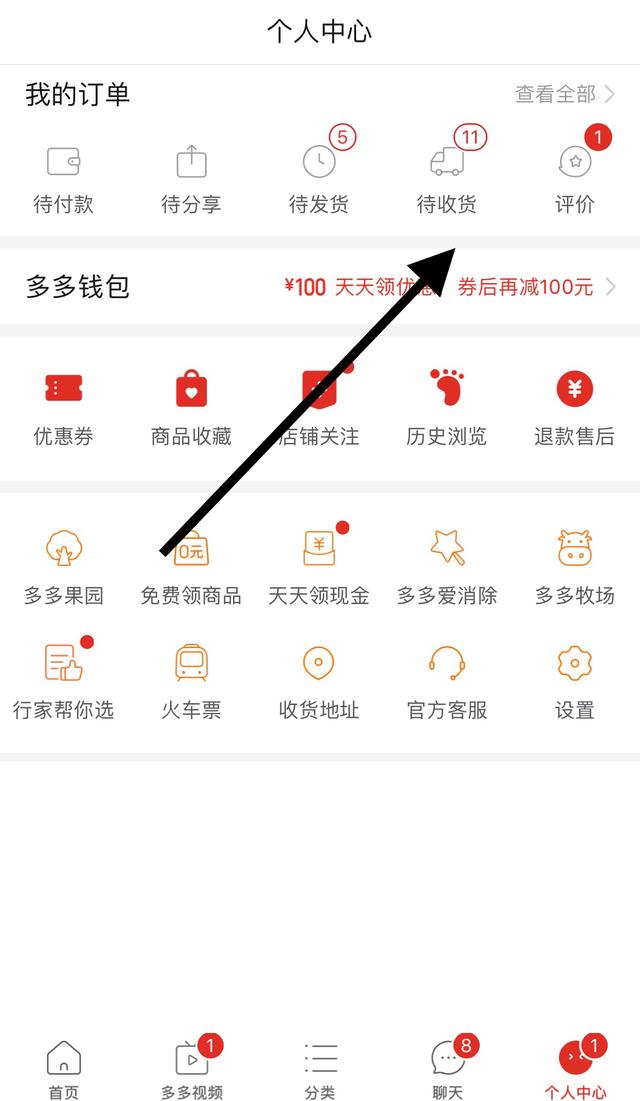 1.打开拼多多,在个人中心页面,找到多多钱包选项,打开