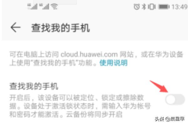 5、点击“查找我的手机”后面的开关按钮。