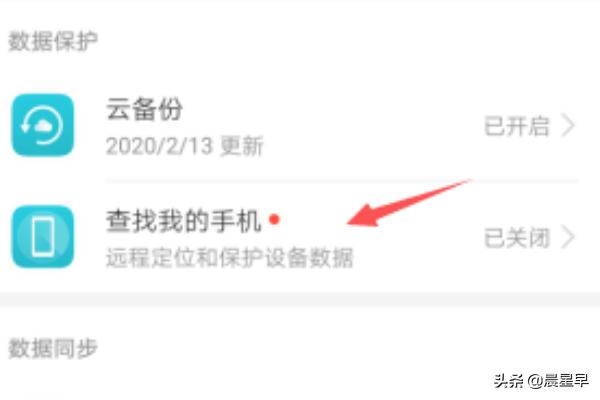 4、点击数据保护栏目下的“查找我的手机”选项。