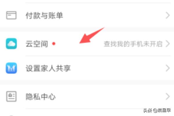 3、在打开的账号中心点击“云空间”。