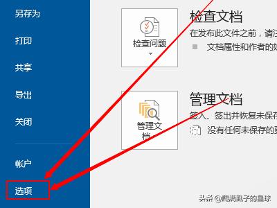 3、鼠标点击之后,页面就会左滑过去弹出“文件”的下拉菜单,我们选择其中的“选项”菜单。