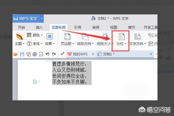 3.在“页面布局”中,选择“分栏”,然后根据需要划分为所需的栏数