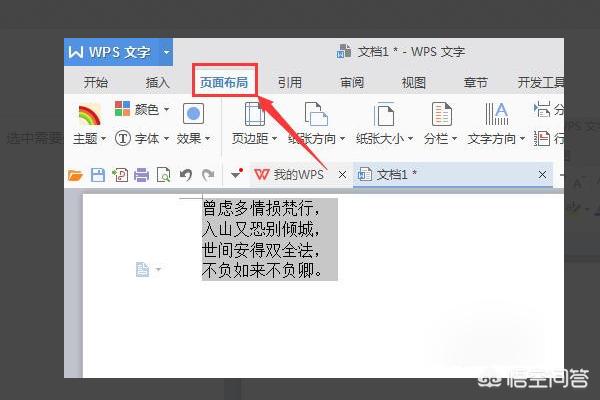 1.在页面中输入一段需要更改方向的文字,并且选中文字。还是在“页面布局”中,选择“文本方向”