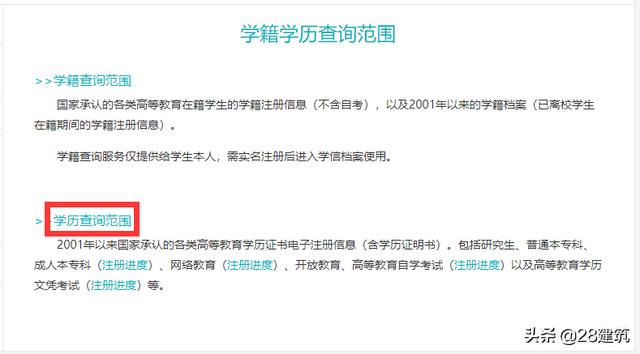 学信网学历查询范围:2001年以来国家承认的各类高等教育学历证书电子注册信息。包括研究生、普通本专科、成人本专科、网络教育、开放教育、高等教育自学考试等。具体如下图:
