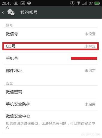绑定完成后回到我的账号,可以看到QQ号已经绑定了,就是说可以用QQ号登录微信,已经成功注册了,下面就是解绑手机号了,直接点击手机号。