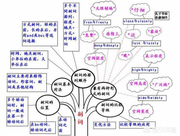 副词可分为:时间副词、频率副词、地点副词、方式副词、程度副词、疑问副词、连接副词、关系副词、表顺序的副词。