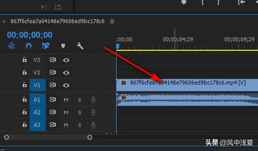 3、最后,选中视频文件,接着用鼠标直接到拖到PR视频轨道中就可以了。视频就成功导入到pr中。