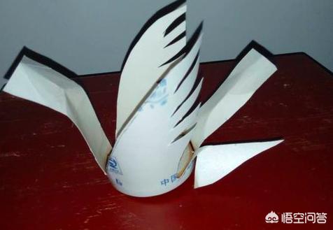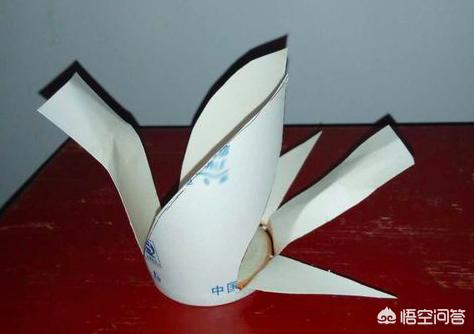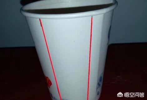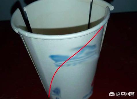 2、使用笔在纸杯合适的位置按照事先计划好的线条先画出需要剪开的地方,如图中红线,正面与背面都这样画好。
