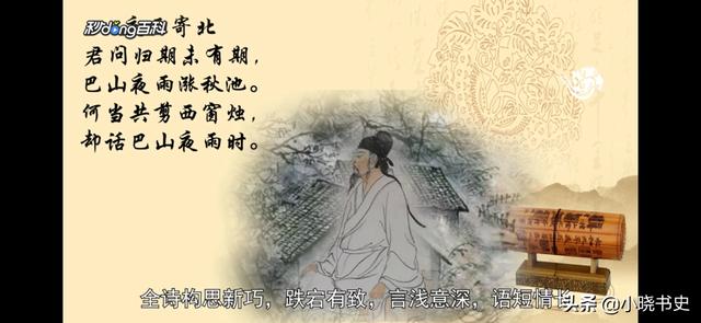 君问归期未有期,巴山夜雨涨秋池。何当共剪西窗烛,却话巴山夜雨时。