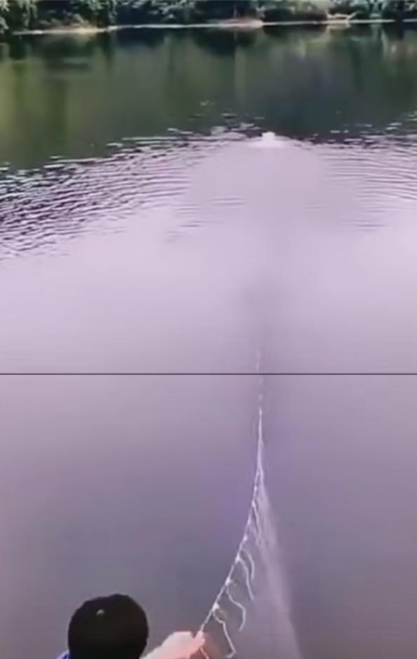 下好渔网后也可以用竹竿敲打水面或扔石头让鱼窜动起来起到“赶鱼”作用。看见鱼撞网了不要急着收网,等鱼缠劳。