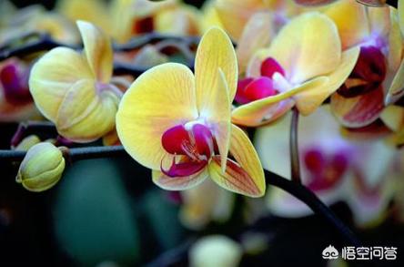 蝴蝶兰属单轴型兰花,不会自根部产生蘖芽而长出子株,因此不能分株繁殖。但若生长环境适宜,其花梗的节上会长出高芽,高芽生根后可切下另盆栽植。所以,若想繁殖家养蝴蝶兰,开花后可用刀刻伤花梗节问处,以便产生愈伤组织而生根出叶形成植株。