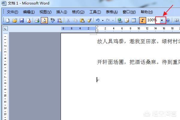 2、在“word”文档的页面中,点击上方的百分比。