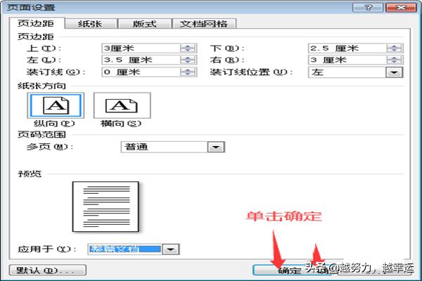 6.在所有内容设置完毕后,在页面设置主界面,点击下方的确定按钮,此时,我们会发现我们的页面的格式已经更改,此时,我们就完成了在Word文档中设置页面格式的任务了。