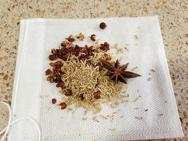 准备配料:料酒3勺,葱头少许,八角,干辣椒,陈皮适量,盐适量