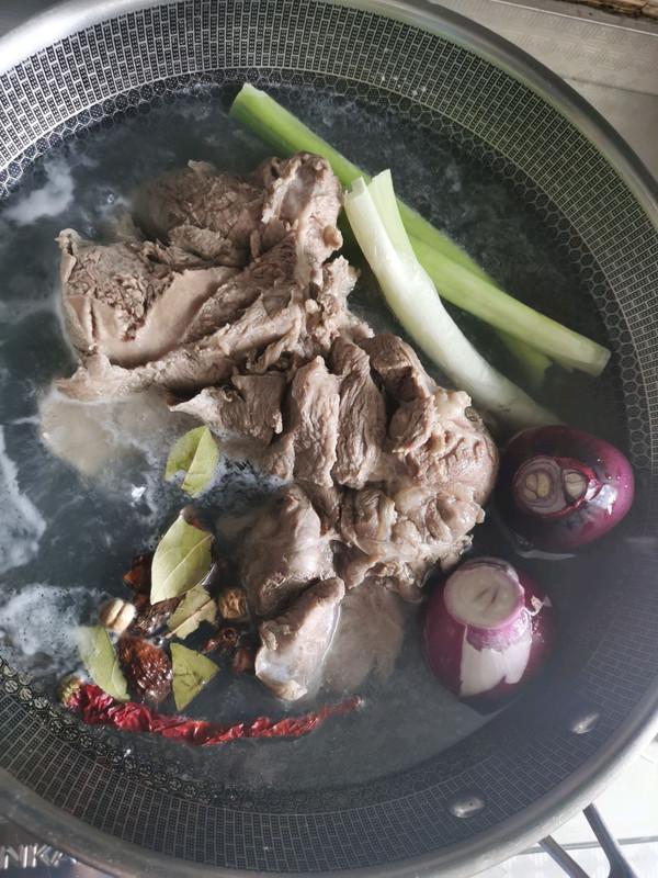 重新起锅,做大半锅水烧开之后把羊腿肉放入