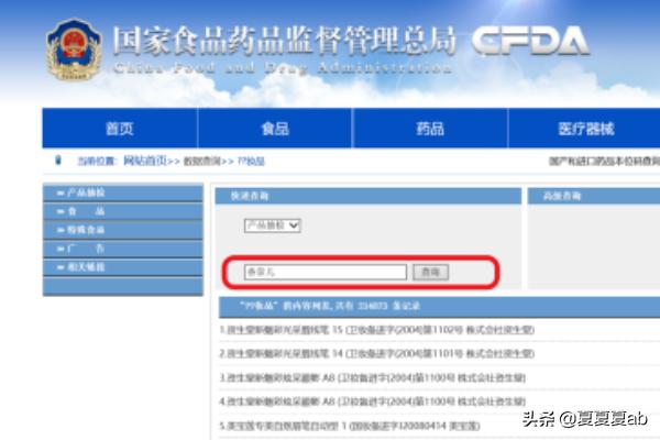 3、在查询栏输入您要查询的化妆品名,点击查询。