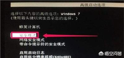 2、重新启动电脑,进入安全模式启动(也可以通过F8进入安全模式)。