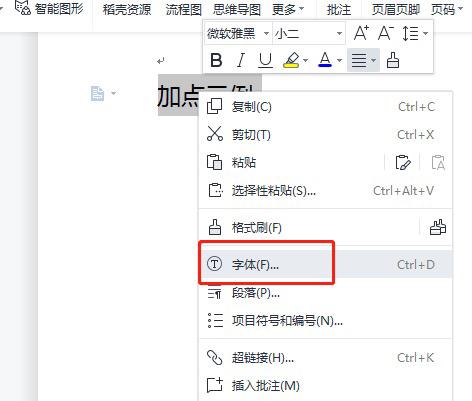 1、打开需要操作的WORD文档,选中需要添加着重号的段落文本,点击鼠标右键,并选择“字体”。