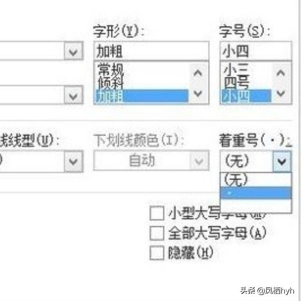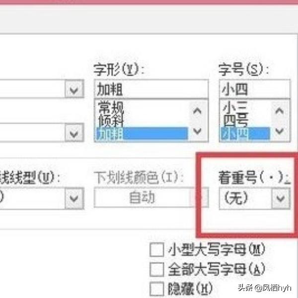 4、接着就是在弹出的对话框中点击【着重号】下拉框,如下图所示。