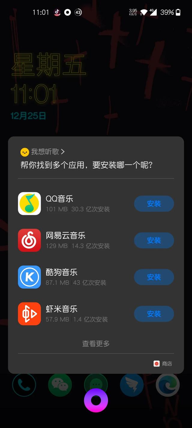 其次是功能方面,比如一家自带的语音助手,如果你让他放音乐的话,他是不会打开系统自带的音乐软件的,而是让你去应用商店下载音乐软件。语音助手只能实现一些最基本的功能,比如添加提醒设置闹钟等等