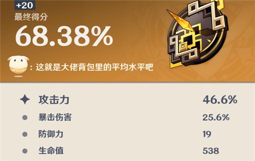 双暴分及格标准:30分算及格,35分算合格,比如10%暴击率+12%爆伤,双暴分为32,属于及格水平。