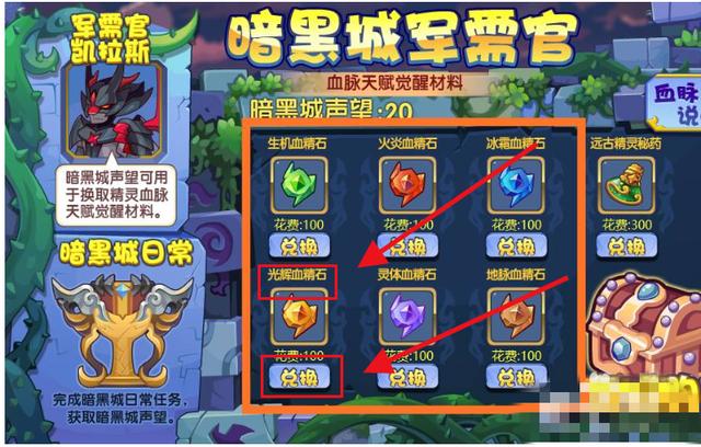最后在暗黑军需官页面中,点击兑换光辉血精石即可获得。
