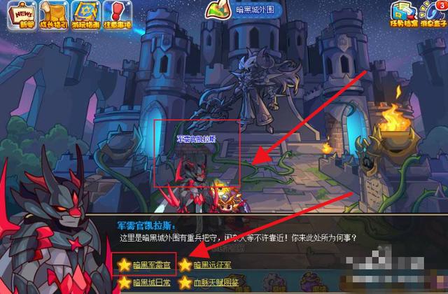 然后在遗忘之地,点击军需官凯拉斯,选择暗黑军需官。