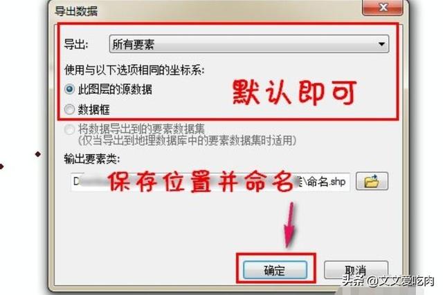 8、导出:一般默认导出所有要素,即导出Excel中所有数据;输出要素类:选择保存位置及命名文件;设置好后点击确定