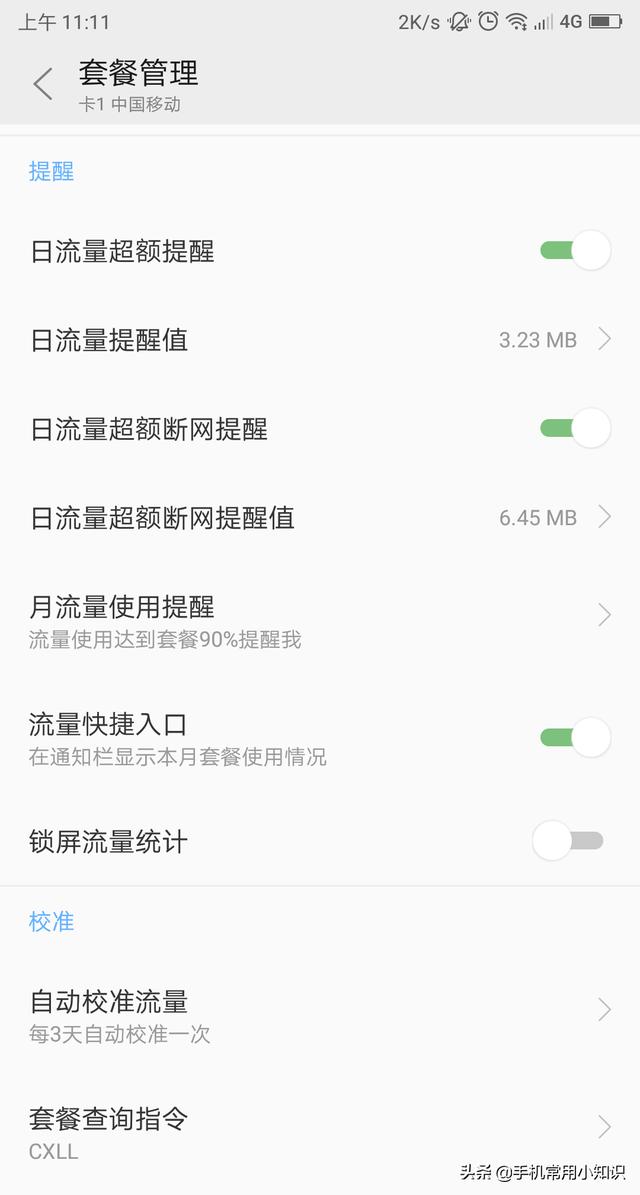 5,在套餐设置页面中的提醒下方,根据自己的实际套餐情况和流量使用设置相应的日流量超额提醒,日流量超额断网提醒,月流量使用提醒,锁屏流量统计等……
