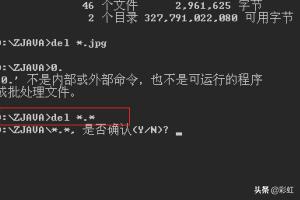 8、例如要是删除jpg,直接输入命令del *.jpg (del后面加空格)就会把所以的jpg删除,你要是删除一个jpg,就输入您的jpg名字,比如del 1.jpg 其他方式一样,我在命令输入del *.jpg文件夹里jpg全部删除。