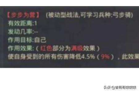 拆解战法:【步步为营】为被动战法,使自身受到的所有伤害降低,每回合可额外叠加一次,持续直到战斗结束。是“防御版”的【愈战愈勇】。在实战中,【步步为营】应用并不是特别的广泛。推荐携带武将【五星赵云】。