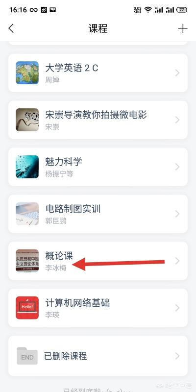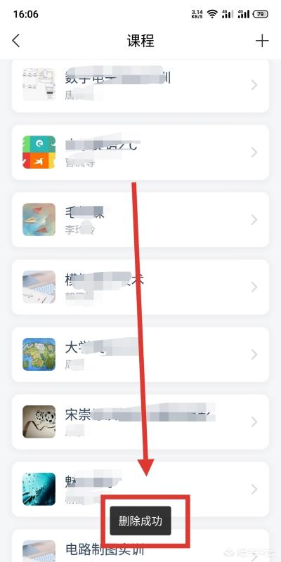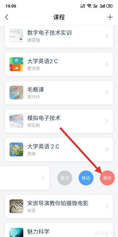 3、选择要退出的课程,拖住向左滑。